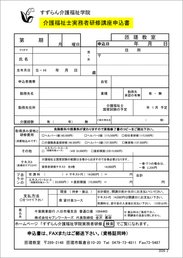 印刷した申し込み用紙に記入の後、FAXかご郵送下さい。